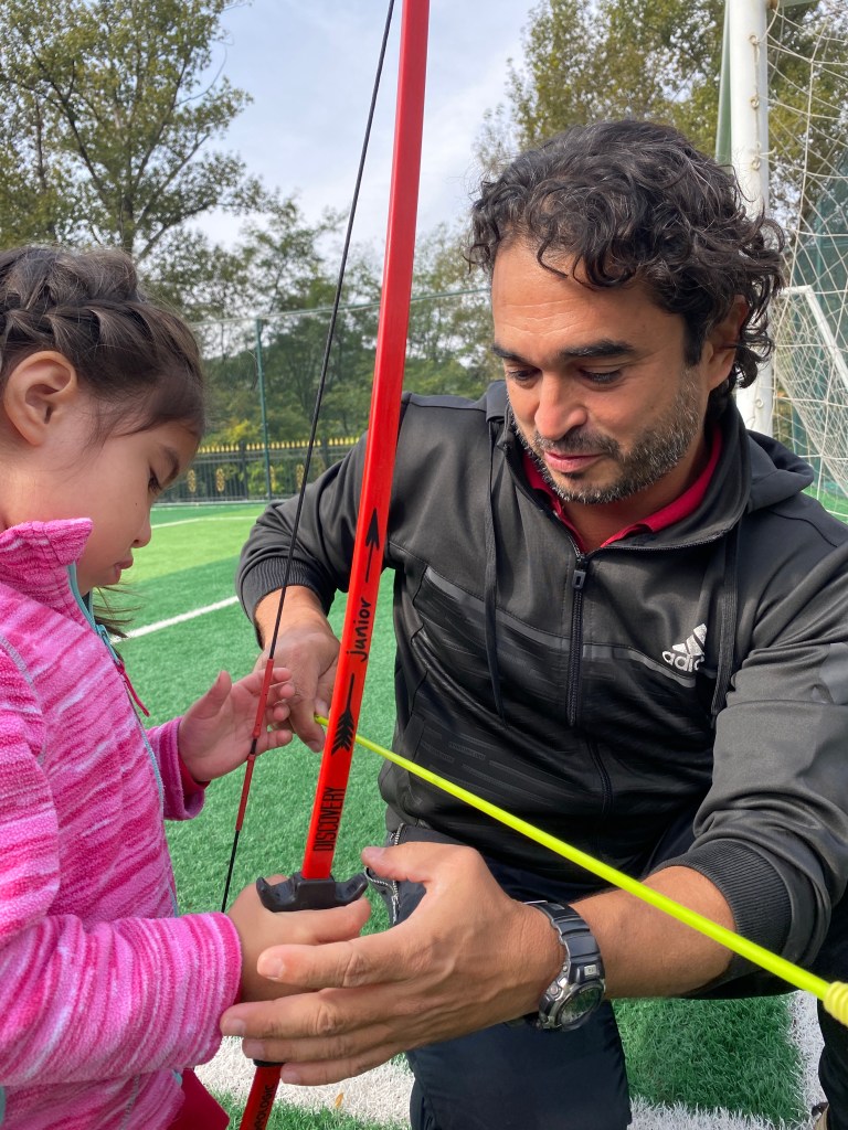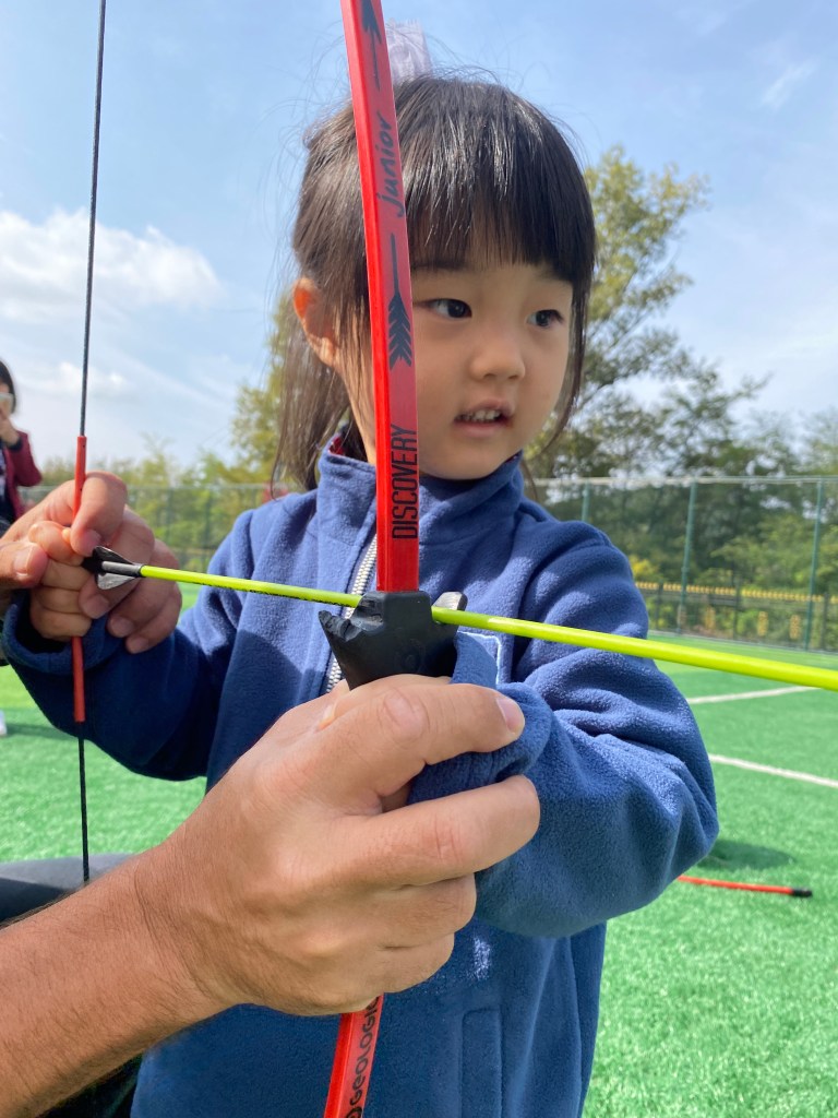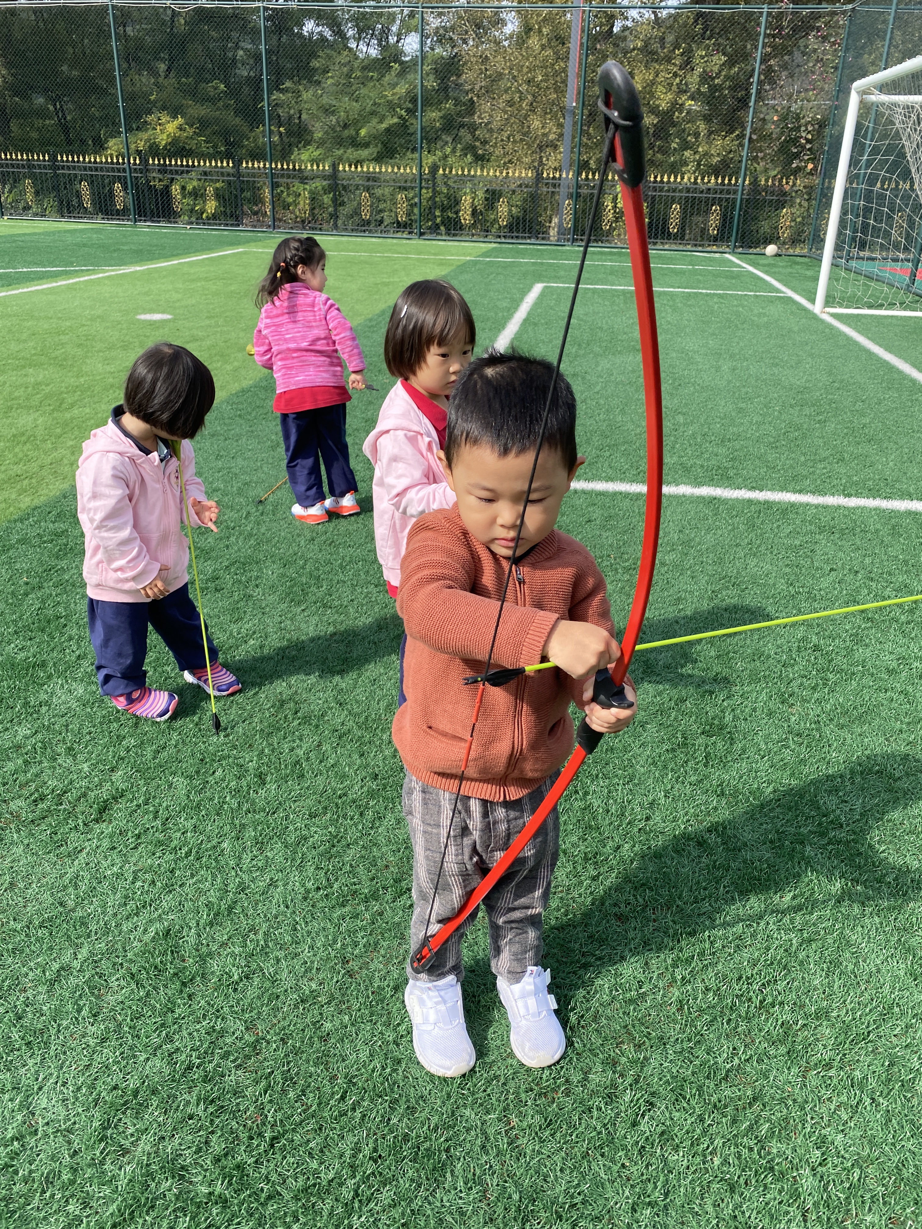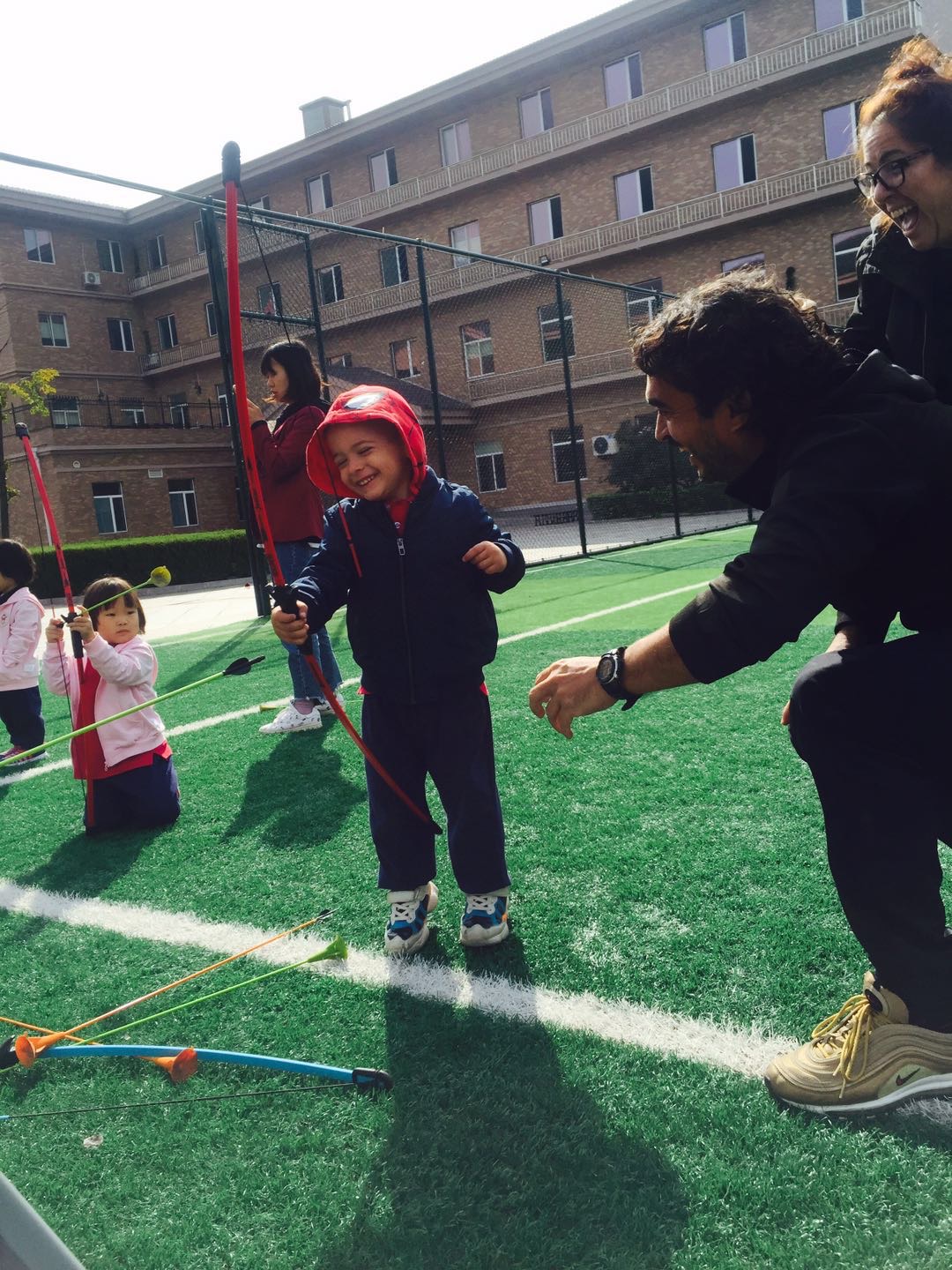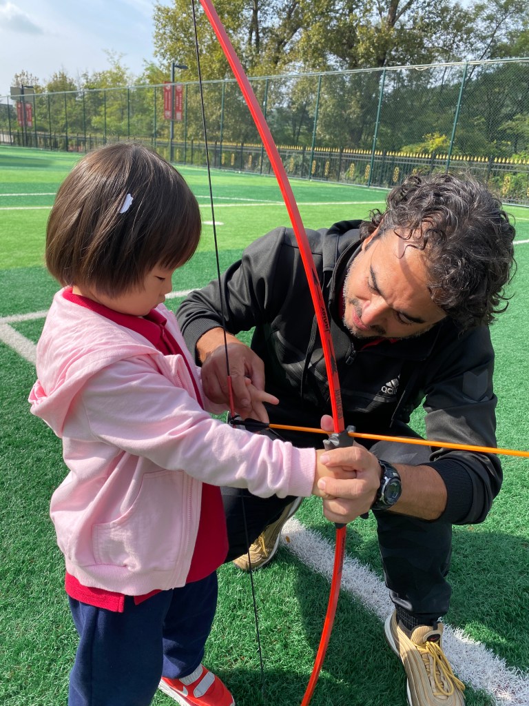 Mr. Paulo and I planned a collaboration based on the story of Houyi and Chang’e. I worked on the story in class and then with Mr. Paulo we practiced with the bow outside. We were shooting, like Houyi did to the suns! We connected the local culture and our motor skills. It was great to see the kids having such a good time! Mr. Paulo and I were amazed at how well the children did.