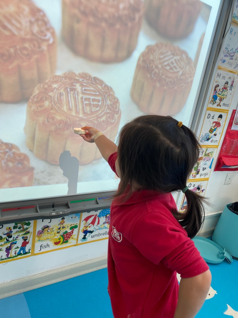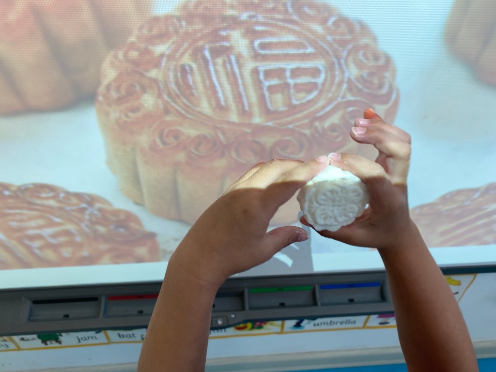 But being transdisciplinary is not just celebrating a day, to be truly interdisciplinary we have to connect with our learning process. In our case we connected the circle shape that we are learning with the moon and the mooncakes. But we did more …
