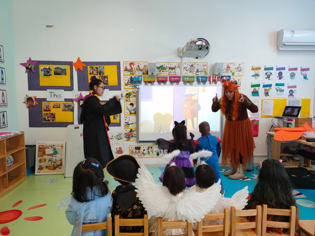 We are celebrating Halloween at school!!! All the kids no matter the age, are very exited because they have been waiting longer for Halloween. I love to dress up. Im not saying that my favourite party its Halloween but I really like costumes. But what I really like about Halloween it’s how excited are the kids waiting and waiting for this special day. Everything related to Halloween makes them very happy. That is why I think it’s a nice opportunity to connect to their process of learning.
