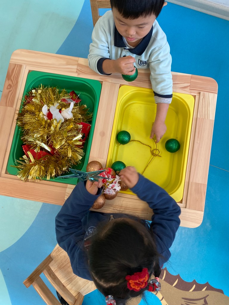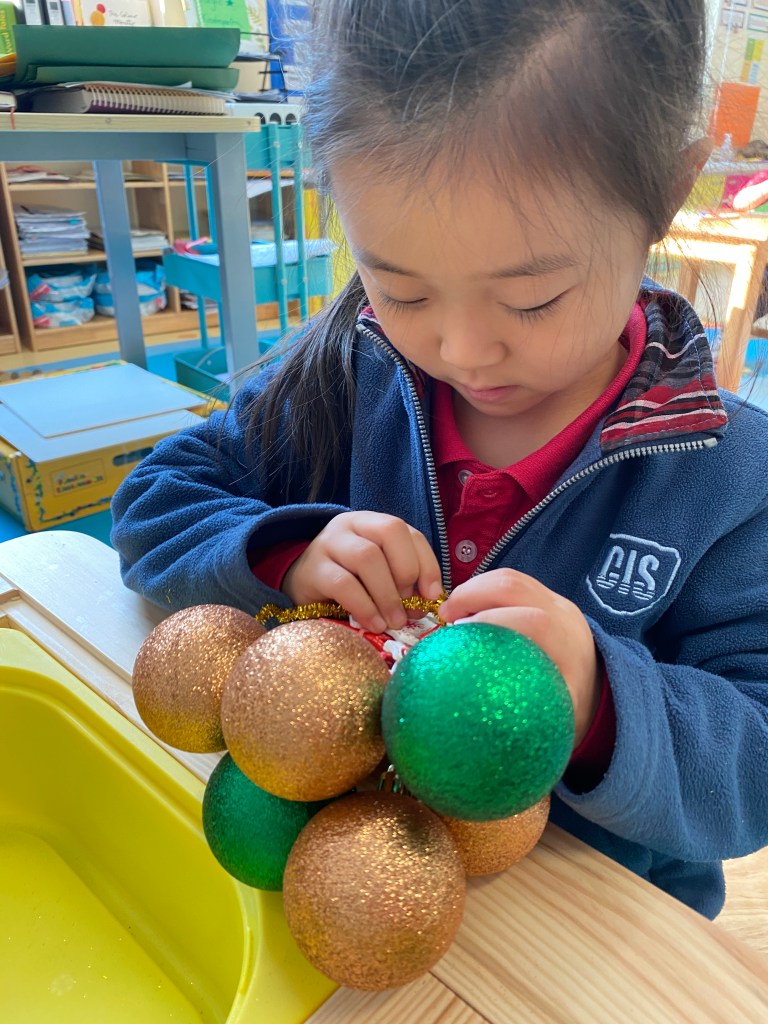 Here in our school, all the children are excited because it is Christmas. In Kindergarten and Pre-k the children have worked hard and been very good. Anna has started to say a few words. In the morning when I ask her “How are you?” She answers: “wonderful!”. Samuel is funny and seems to be finding his place in school. Connie loves learning new things, she is recognising his name very well. Henry knows the difference between a triangle and a square, although I think his favourite is still the circle. Elsa recently surprised me because she dared to write her name without me asking. Lena is differentiating the sounds very well and recently she too wrote a “p” that she later transformed into a beautiful drawing. Nanami has been learning about the learner profile, and the unit profiles: Reflective, thinker, and principled. I am very proud of my students.