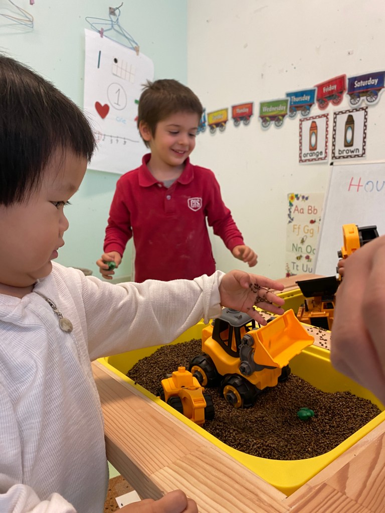 Sensory play includes any activity that stimulates a young child’s senses of touch, smell, taste, sight and hearing, as well as anything which engages movement and balance. Every week we have at least one activity related to this important aspect of human development. Also I like to connect this sensory activity with the Inquiry, so in the next pictures you will see the sensory activity during the week of the “Construction worker”, part of our unit “How we organise ourselves” where we are learning about the jobs in our community.