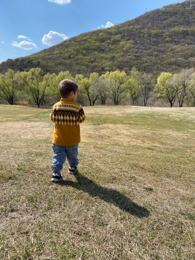 Show your child what binoculars are, they are very fun to play with! You can observe things from outside, or you can see the outside world from your home through a window. We can also do a ranger book, where we stick flowers or leaves that we collect from our walks outside every day into a book!